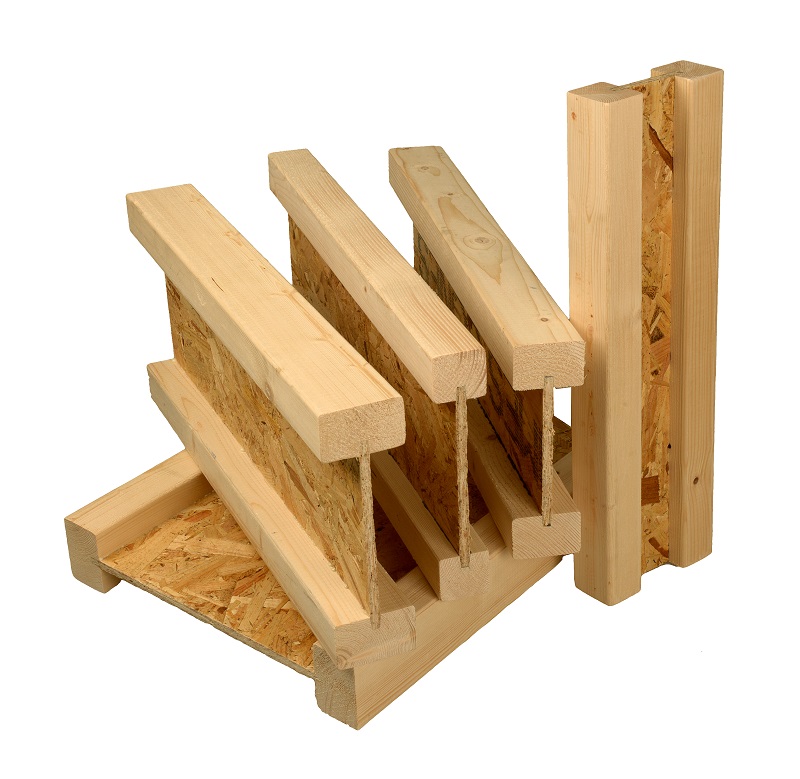 A JJI-Joist is a composite engineered timber joist combining 45mm deep high-grade softwood flanges with a 9mm thick oriented strand board (OSB). Four flange widths are available at 47, 63, 72 and 97mm. It is used in residential and commercial buildings as load- and non-load-bearing members for floors, walls and roofs and supplied in a wide variety of depth to suit UK and European markets.