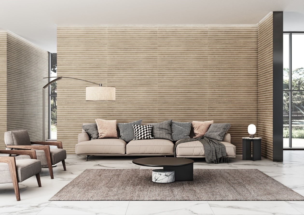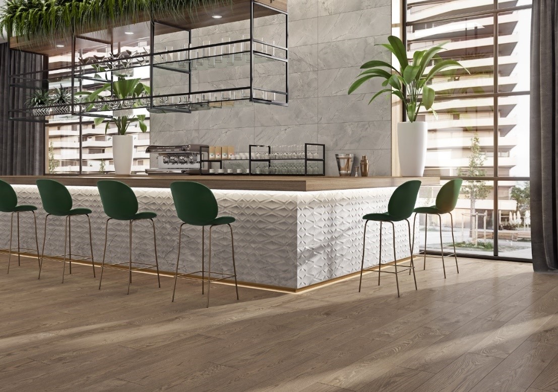 Saloni Porcelain tiles are commonly used to cover floors and walls, having a water absorption rate of less than 0.5 percent. Porcelain tiles are an extremely versatile option in the construction industry. Saloni produces a large variety of finishes and appearances, mimicking nature or defining new contemporary styles. Their strength, durability and low absorbency lend themselves to internal and external uses.