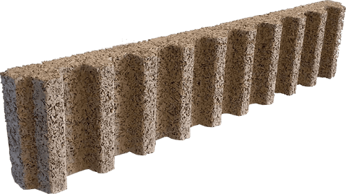 Isotex acoustic or noise barriers have high sound absorption and effective sound insulation. The available variants are represented by the elements: S10 and S13. These elements are built from a wood-concrete conglomerate and are designed to reduce noise pollution from roads, highways, railways or industrial centers. They are produced starting from cement and fir wood, ground and mineralized with natural mineral, in order to make them inert. The wood used is exclusively recycled wood from end-of-life pallets, selected and untreated.