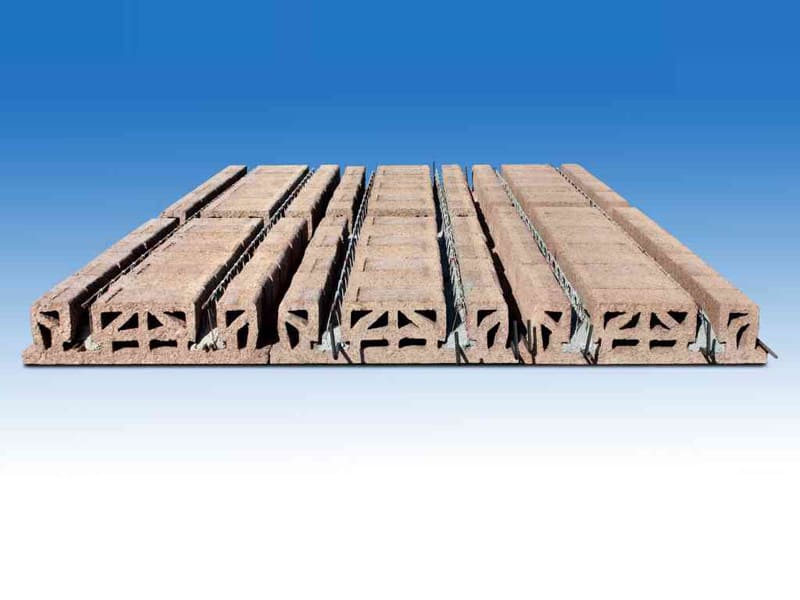 Wood cement elements and panels are used for the construction of floors and can be produced in different thicknesses. The floors comply with the UNI EN 15498 “Precast concrete products - Wood-chip concrete shuttering blocks - Product properties and performance”. The elements are produced starting from cement and fir wood, ground and mineralized with natural mineral, in order to make them inert. The wood used is exclusively recycled wood from end-of-life pallets, selected and untreated.