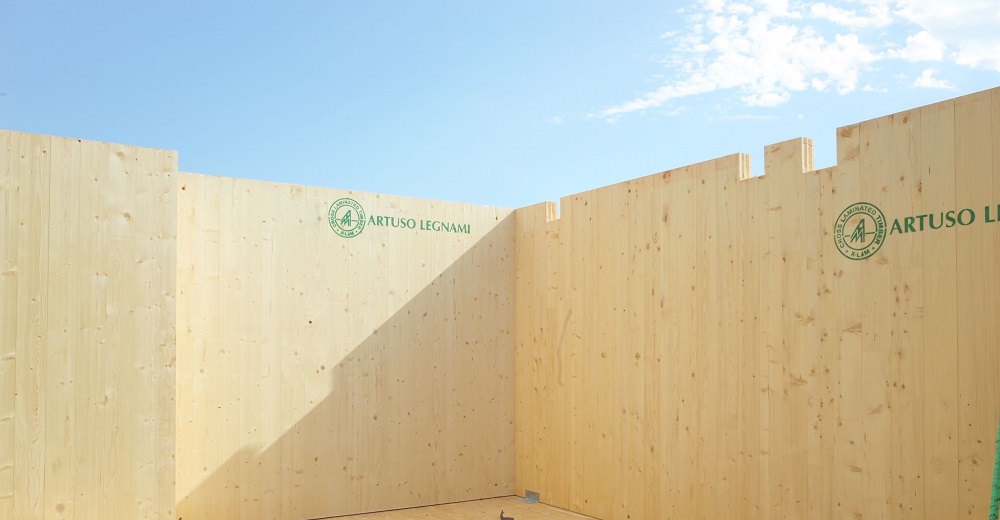 The X-Lam panel or CLT (Cross Laminated Timber) is a wooden panel of large dimensions composed of slats of fir wood classified C24; the slats are crossed orthogonally between each other, in this way the panels achieve an excellent mechanic action and a homogeneous geometric and structural stability. The panels have variable thickness from 60 mm to 300 mm.