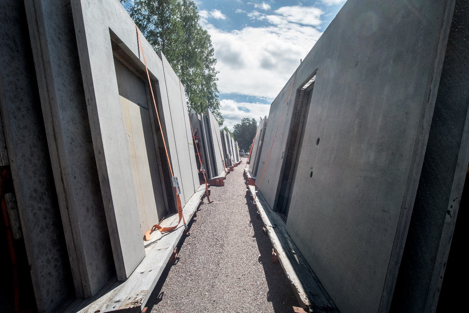 A composite wall can be used both as internal wall and as external wall. The composite wall consists of two precast reinforced layers which are joined together with a gap by means of a lattice girder system. The concrete is 100% recyclable, which creates the opportunity to reduce the environmental impact by reducing the need for new raw materials. Based on the European waste hierarchy, the concrete can currently be recycled as filling material or ballast while the reinforcement can be recycled. In addition, the concrete contains no hazardous chemical substances for health nor the environment. Byggelement (Skandinaviska Byggelement AB) was created as a company 2002 and is a part of the Peab Group. Byggelement is one of Sweden's leading suppliers of complete structural systems in concrete and prefabricated concrete elements. We produce and deliver project-adapted frames and elements directly to the construction site, ready for assembly. Byggelement manufactures and supplies frame systems and concrete elements for multi-dwelling buildings, office, hotel, industrial buildings, business premises and healthcare and school.