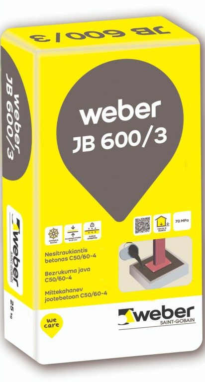 weber JB 600/3 is a technical mortar used for installation, pointing and second stage concrete application of concrete elements; anchorage soldering; difficult second stage and filler concrete applications in small spaces. It can be applied with a pump equipment.