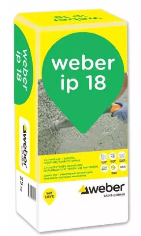weber ip 18 is a pump-able cement-lime render for interior and exterior concrete, bricks, blocks, etc. surface walls plastering and levelling. It can be used with a pump equipment or can be applied by hand.