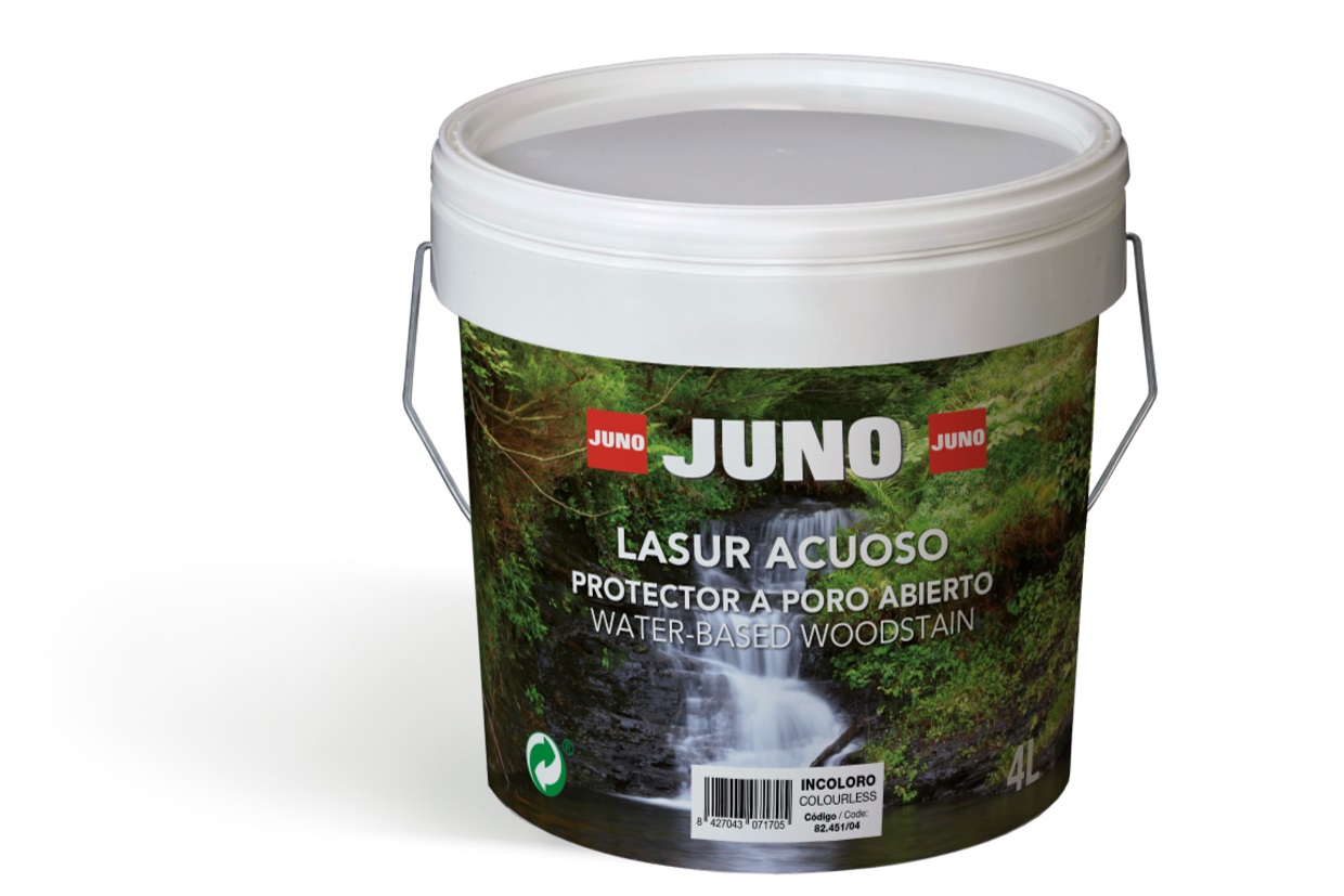 This EPD® covers all ranges of JUNO varnishes indicated below. The following is a brief description of the product Aqueous Lasur, as well as its main characteristics: Juno Aqueous Lasur is based on water-emulsified acrylic resins, transparent pigments and anti-fungicide additives, to obtain a protective finish of the highest quality. Protects and decorates exterior planed wood and rough sawn timber. This water-based product provides a low build matt finish which will not blister, peel or flake. Suitable for hardwood and softwood. Forms a microporous film which is permeable to water vapour contained in timber.