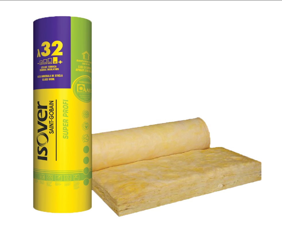 Isover SUPER PROFI mats can be used for thermal, sound and fire insulation in buildings. Compressed rolls made of Isover glass wool. The mats are manufactured by melting the mineral raw materials in a furnace, fiberising the melt through TEL process, spraying a binder and adding mineral oils for protection against dust and water repellence. The mineral fibres mat is compressed and packaged in rolls on the production line.