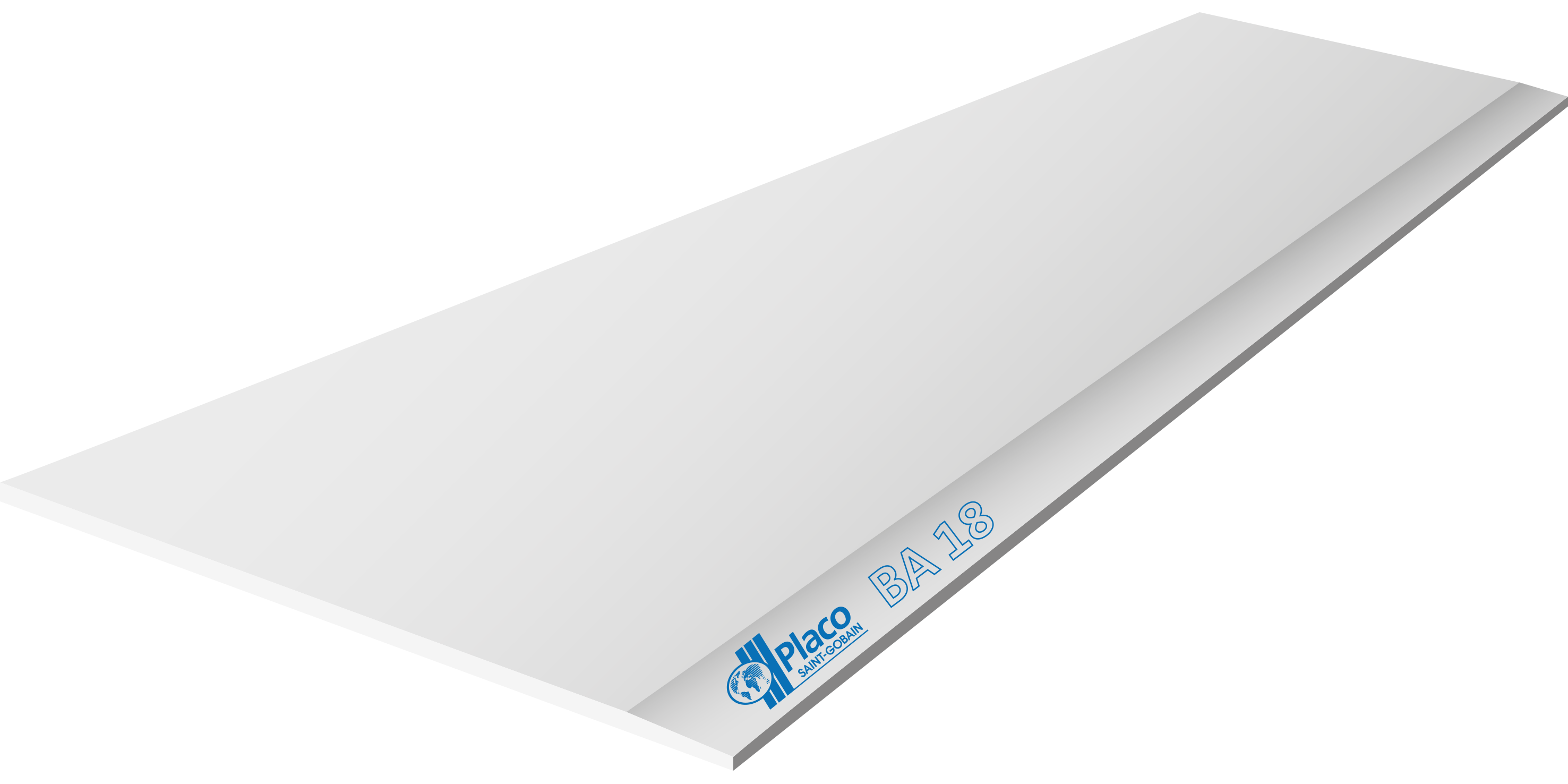 Description: Laminated Plasterboard with double-sided cardboard and gypsum core of natural origin, manufactured by continuous rolling process, with the longitudinal edges refined and 18 mm of thicknesses.