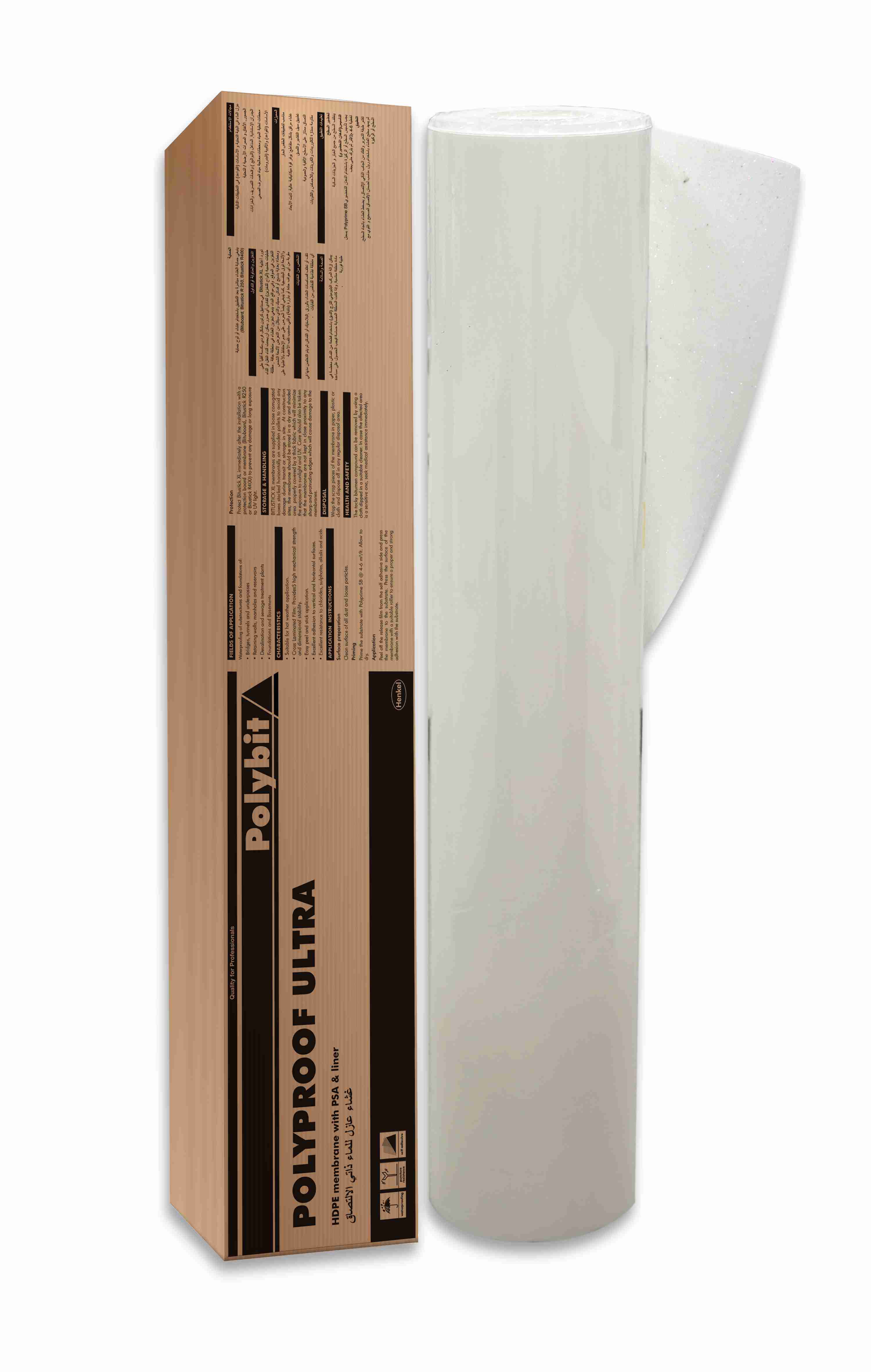 Polyproof Ultra a self-adhesive, post-applied high performance HDPE based waterproofing membrane with plain finish and release liner for easy installation.