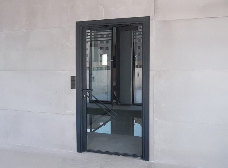 - 6+6 or 5+5 mm thick laminated glass hinged panel framed in aluminum.