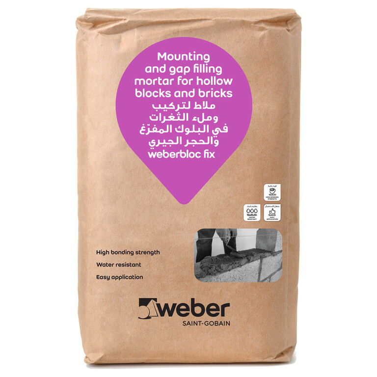 Weberbloc fix is a ready mix mortar that requires only the addition of water. It is made of cement, graded sand and additives for improved workability, better bonding and water retention.