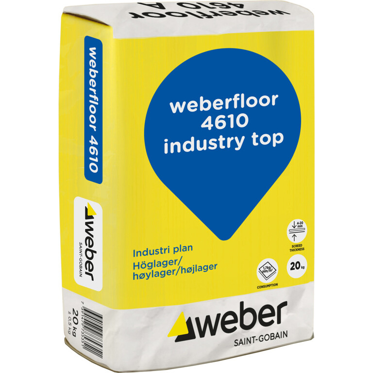 weberfloor 4610 industry top is a pumpable, fast-curing, low-alkaline, self-leveling wear layer compound for industrial floors based on special cement, sand, supplementary binders and additives.