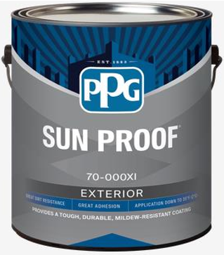 Sun Proof Exterior 100% Acrylic Latex is specifically formulated to meet the performance requirements of the residential and commercial markets. The new and improved formula provides excellent durability, great dirt resistance, low temperature application and excellent adhesion. Sun Proof can be used on properly prepared and primed new and previously painted exterior siding, doors, trim and windows. Vinyl siding and similar plastic composites should not be painted with a color darker than the original color. Painting vinyl siding or plastic composites with a darker color may cause them to warp.