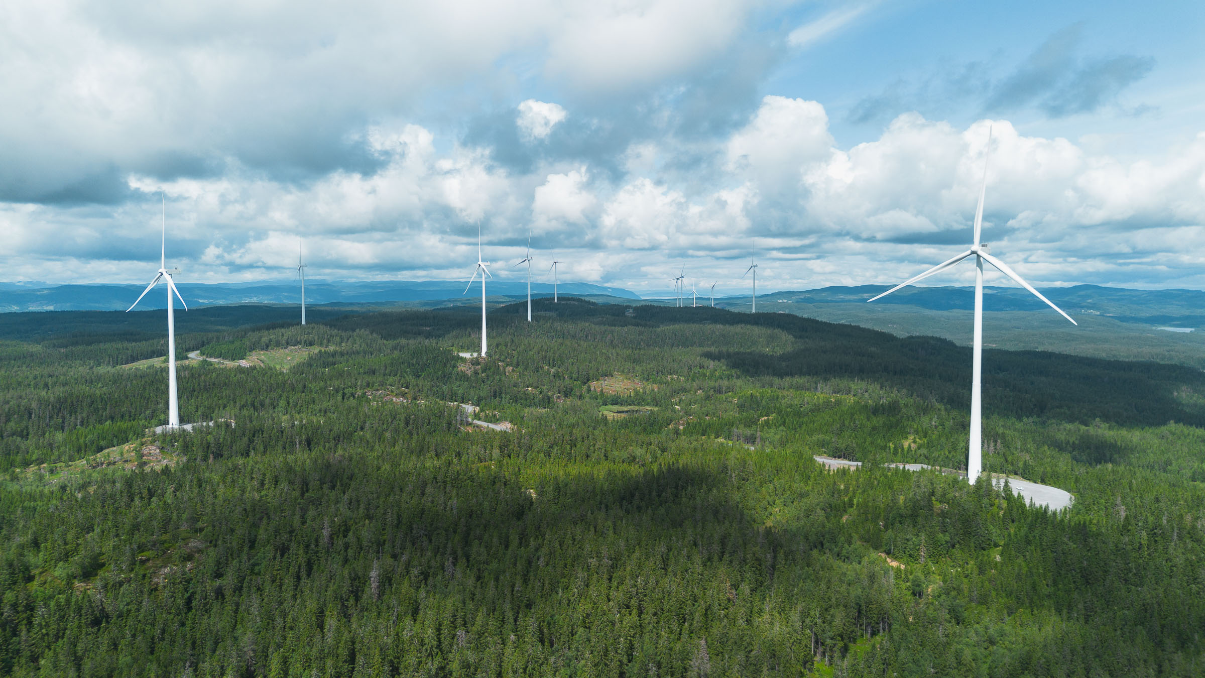 Odal wind farm is a wind power plant located in Nord-Odal municipality, just east of Minnesund and Mjøsa, on the border between Innlandet and Viken counties. The power plant consists of a total of 34 wind turbine shared between 2 different areas. 11 turbines are located on the Engerfjellet area, while the other 23 are located on the Songkjølen area. Odal wind farm is one of Norway's most modern facilities, with 217 meters-high turbines, and is expected to be the 5th largest power plant in the inner side of the country. With an installed output of 160 MW, the wind power plant will produce approximately 531.5 GWh annually, enough to supply 33,000 households with renewable electricity. Odal wind power plant is jointly owned by the following companies. Akershus Energi Vind (33.4%), Cloudberry (33.4%) and KLP (33.2%).