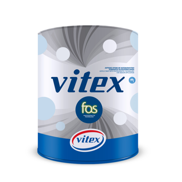Innovative paint for interior application, based on active nano Titanium Dioxide photocatalysts, which are product of research and development by the Foundation of Research and Technology -HELLAS (FORTH) and the spin-off company PCN Materials. The paint was developed by VITEX S.A., specifi cally for indoor use by exploiting the properties of photocatalysis using visible light, i.e. light from light bulbs, without the requirement of UV radiation. It breaks down and decomposes pollutants, cleaning the interior air from inorganic and organic gaseous pollutants such as nitrogen oxides (NOx) and Volatile Organic compounds (VOCs) and unpleasant odors. The degradation process is on a continuous basis as long as there is artifi cial or natural lighting with zero other additional energy costs. Besides, due to its photocatalytic action, the product is characterized as a self-cleaning paint. It maintains its whiteness and dramatically reduces the need for maintenance, cleaning or repainting for over 7 years. In case of deterioration of the paint surface, repainting is required to recover the original photocatalytic activity. The photocatalytic material, paint additive consists of modifi ed nano-Titanium Dioxide (TiO2) produced by the company PCN Materials based on patents registered in Europe (17 countries), China and USA.
