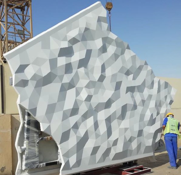 GRC is a composite material consisting of cement, fine aggregates, water, polymer admixtures, and alkali-resistant (AR) glass fibers. GRC is widely used in facade cladding, decorative architectural elements, and lightweight concrete structures due to its high strength-to-weight ratio, durability, and design flexibility.