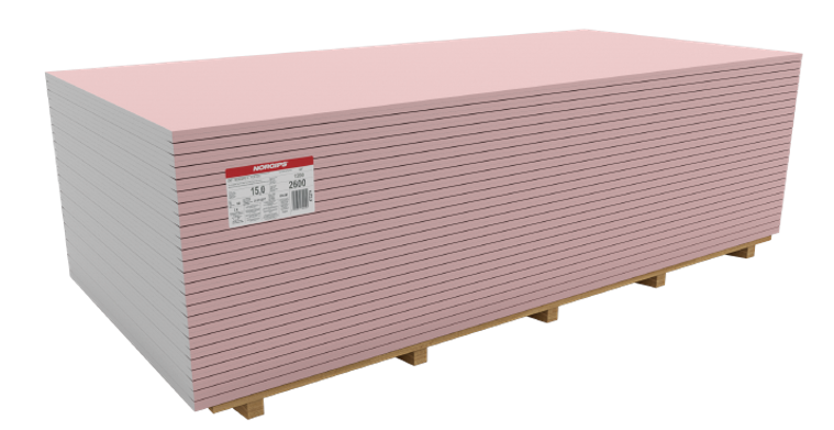 Norgips GKF is gypsum board for use in construction inside buildings. It is used for all types of buildings and for use in dry construction systems used in rooms with a relative humidity of not more than 70%. The maximum application temperature is 50°C. The sheets are used as a cladding for partition and floor walls, in the construction of suspended ceilings and attics to obtain barriers with a certain fire resistance (not more than EI 180).