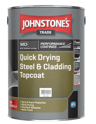 Johnstone's Trade Performance Coatings Quick Drying Steel & Cladding Topcoat is a water-based, anti-corrosive topcoat suitable for use on ferrous metal and cladding. It is specially formulated to provide protection on suitably primed, new, pre-treated, weathered or previously painted metal and plastisol cladding. Designed with water-based technology, it provides a sprayable solution in a satin finish that offers up to eight years of protection and, whichever one of thousands of available colours you choose, it becomes touch dry in only an hour. It's recoatable after eight hours under normal conditions; if it's very humid or very cold, drying times will be longer.