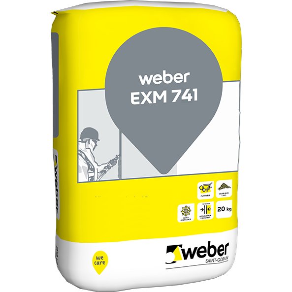 weber EXM 741 is a dry concrete product. Mix only with water to get a ready-to-use thixotropic, expanding, frost-resistant and pumpable mortar. weber EXM 741 -10° is suitable for a wide field of application since it has excellent adhesion and pumping characteristics. It is intended for jointing between precast concrete elements with joints from approx. 10 mm where good adhesion and sealing is required. It is also used to reinforce and joint old stone bridges and embankments, concrete and stone/brick walls, large cracks in concrete and mouldings, e.g. between walls and balcony slabs etc. Because of its thixotropic consistency EXM 741 -10° is especially suitable for vertical joints. It is designed to be mixed and pumped.