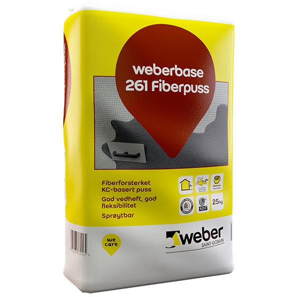 weberbase 261 Fiberpuss is a fiber reinforced dry mortar based on cement and lime. When mixed with water, it is a ready-to-use render for indoor and outdoor use.