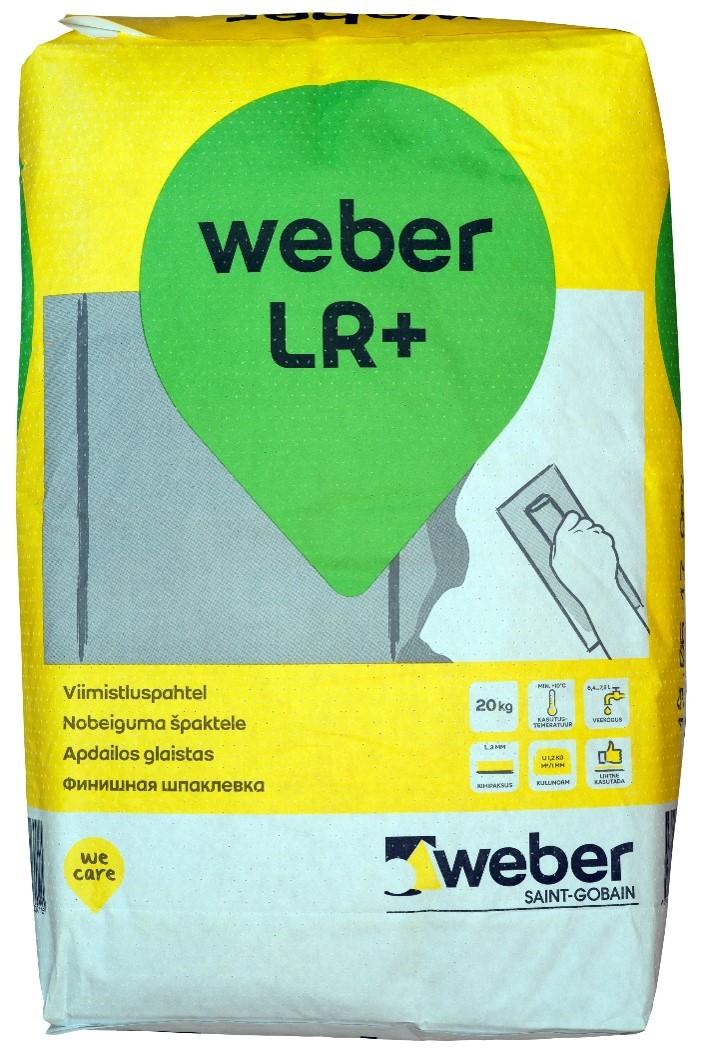 weber LR+ is a polymer-based ceiling and wall finishing putty for dry rooms product. It is not suitable for use in damp and wet conditions.