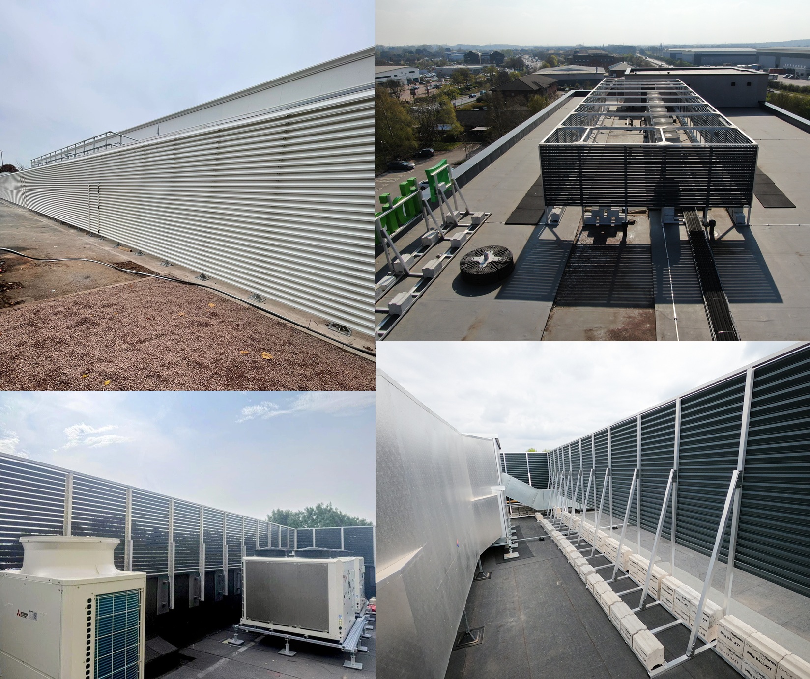 Screen not relying on fixing points, structural connection to the building, or any penetration through the weatherproof membrane.