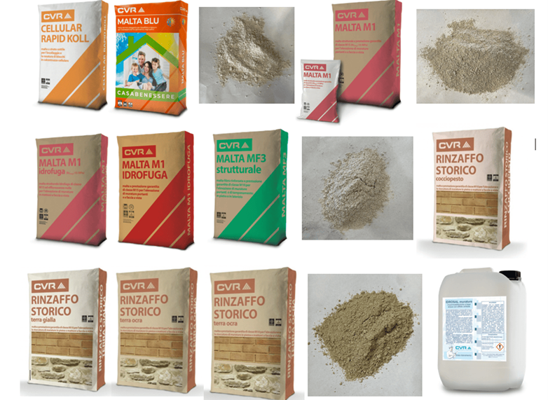 All products are formulated with lime, cement, or natural hydraulic lime NHL 3.5 and selected additives to ensure high workability, adhesion, breathability, and durability.