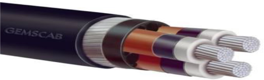 The product consists of a class 2 stranded aluminum conductor with a cross-sectional area of 400 sq.m nt loads. Each conductor is provided with a semi-conductive conductor screen, an XLPE (cross-linked polyethylene) insulating layer, and a semi-conductive insulation screen. For shielding, the cable is equipped with a metallic screen made of copper tape. This configuration ensures excellent dielectric strength, thermal stability, and resistance to electrical stresses. The cable is designed for 19/33 kV (E) grade applications, suitable for power systems operating at 33 kV. It is thermally rated for continuous operation at 90°C and can withstand temperatures of up to 250°C under short-circuit conditions.