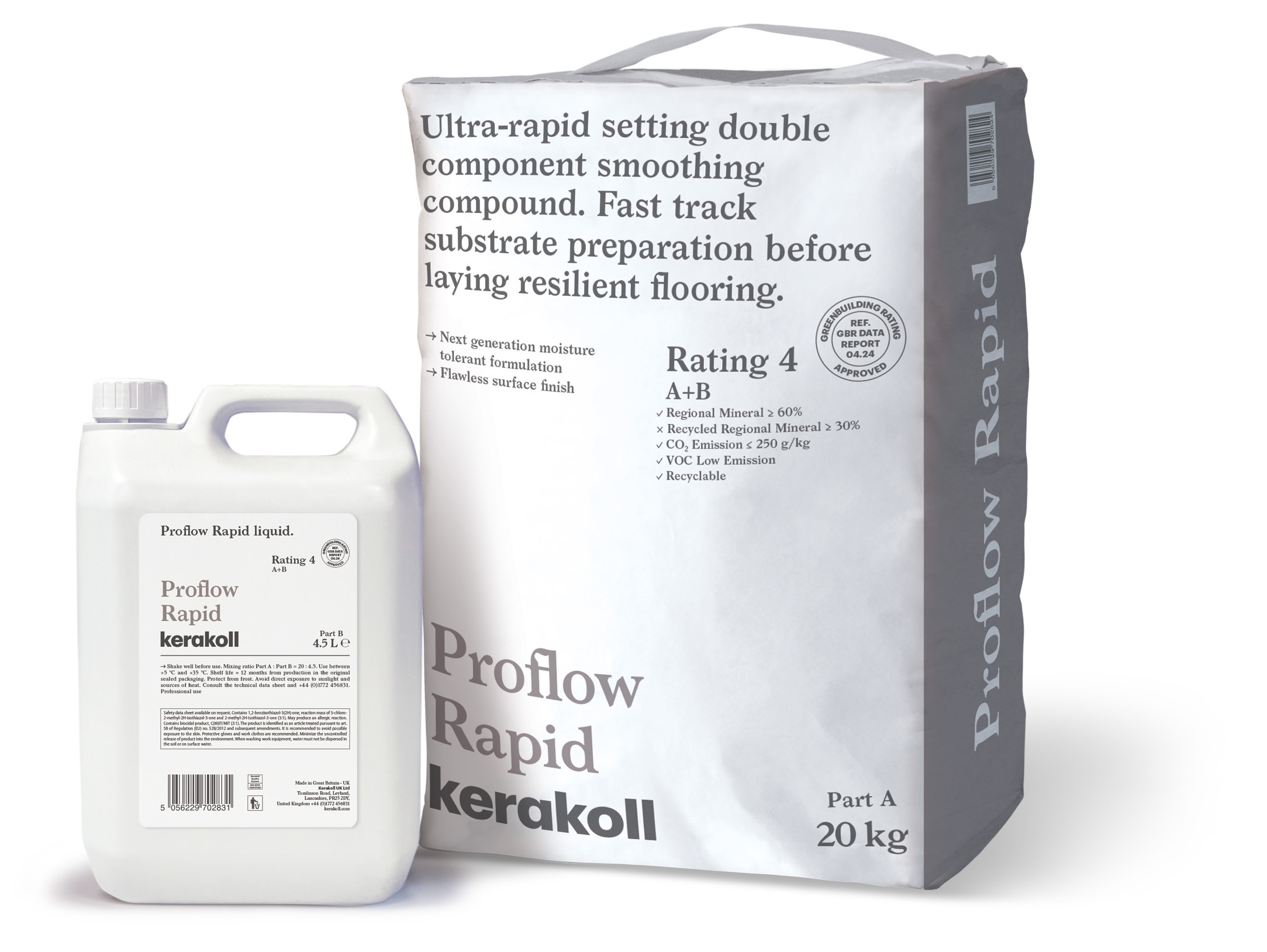 Proflow Rapid is an ultra-rapid setting, double-component smoothing compound designed for fast-track substrate preparation before laying resilient flooring. Its next-generation formulation combines free-flowing workability, moisture-tolerant performance (suitable for use below DPM), and a flawless surface finish.