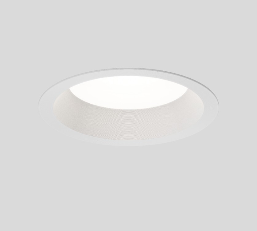 Round luminaire housing made of plastic 3D printing; with trim; suitable for ceiling thickness of 1-25 mm; installation without tools using wire springs; lighting level recessed; completely homogeneously illuminated, satinised or microprismatic PMMA cover; or high quality lens system; energy- efficient LEDs with very good colour rendering; external converter for ceiling insertion; CRI ≥ 90; IP20; IP54 for DALI versions; LED board replaceable by an authorized professional; control gear replaceable by an authorized professional; Available with cut out diameters: 160-175 mm, 180-195 mm, 200-215 mm, 220-235 mm.