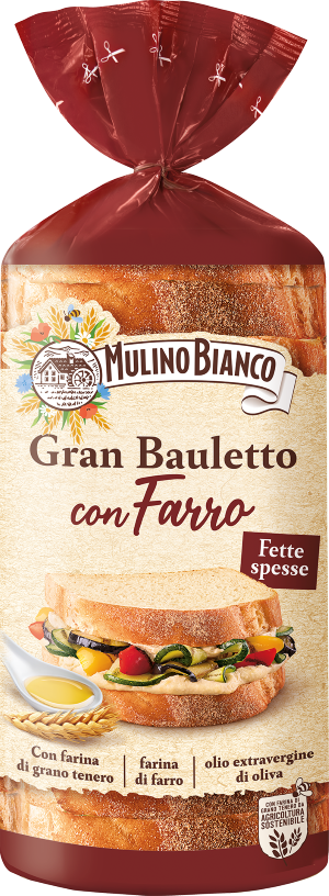 Gran Bauletto Grano Tenero e Farro is an Italian soft bread with soft wheat and spelt flours. It is produced in the Barilla Italian bakery plant of Cremona. It is packed in 500 grams format and is ready for consumption.