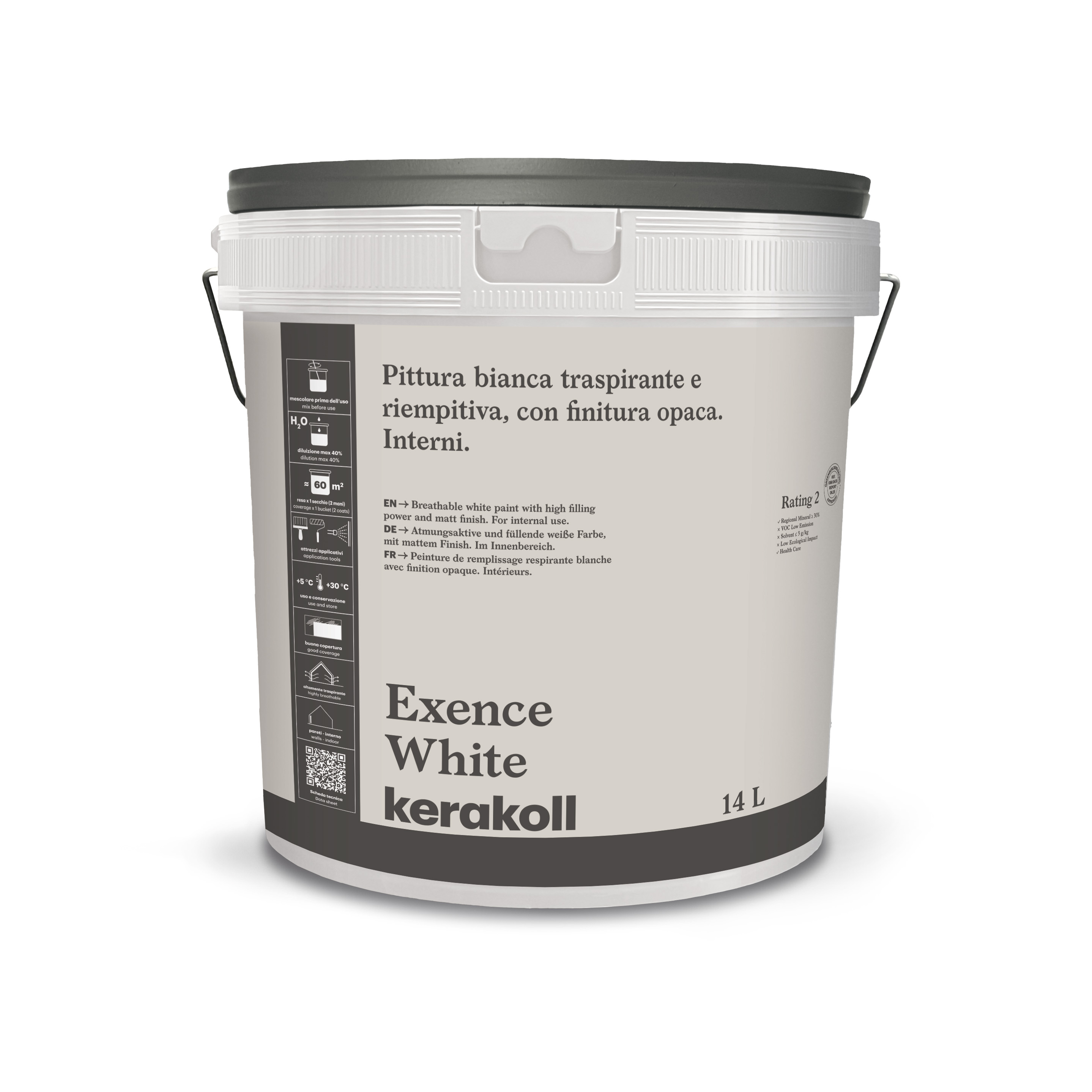 Exence White is a white, breathable, and filling paint with a matt finish, suitable for interior applications.