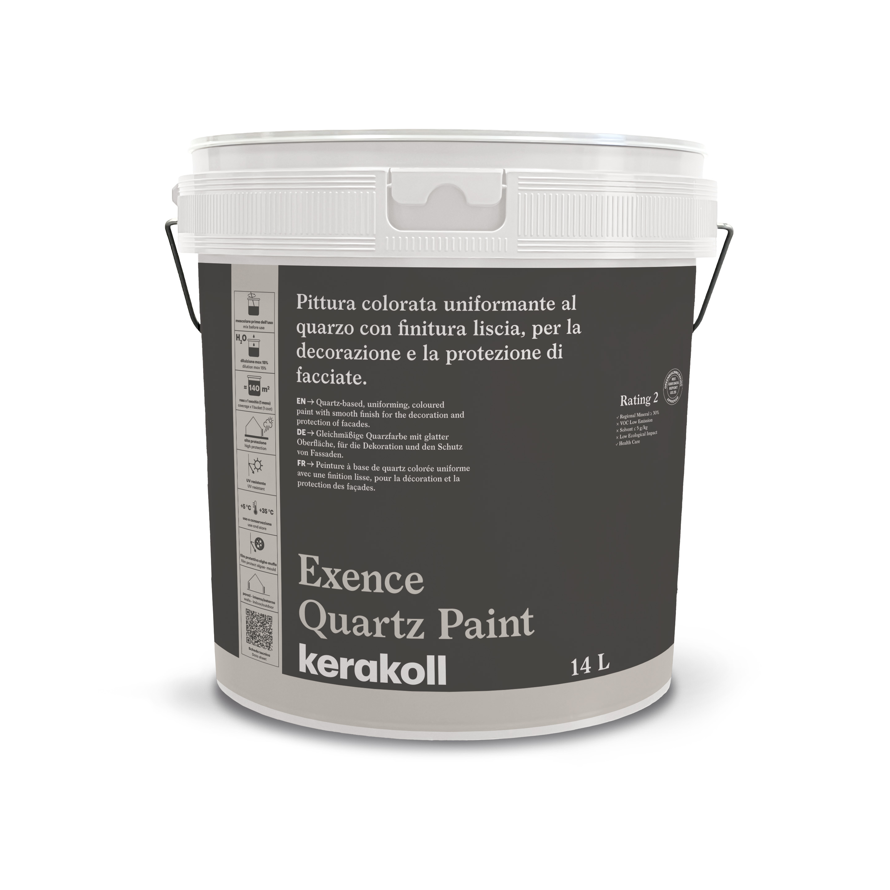 Exence Quartz Paint is a coloured quartz-based paint with a smooth finish for the decoration and protection of façades. It provides a compact appearance, ensures high coverage and filling capacity, levels surface imperfections, and enhances the aesthetic uniformity of the substrate.
