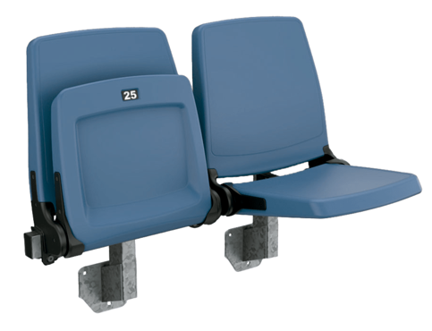 The seat and backrest blocks are blow-molded in copolymer polypropylene with UV-stabilizing additives, with folding structures made by injection molding in fiberglass-reinforced polyamide. The seat folds down thanks to the action of two springs and is mounted on a versatile bracket system made of hot-dip galvanized steel for attachment to the stands, allowing it to adapt to any geometry