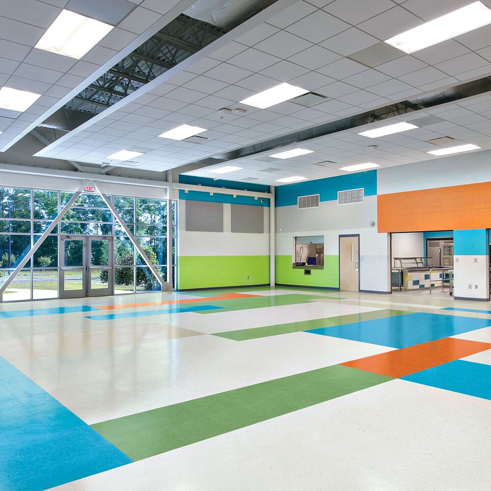 AHF Product’s Vinyl Composition Tile (VCT) is made with up to 85% North American limestone. It is the most durable, budget-friendly option available. VCT has a through-pattern construction, so as it wears the pattern is consistent providing endless lifecycles. Scratches are easily buffed out and with proper maintenance a VCT floor can last generations. The breadth of collections and colors offer design flexibility for all commercial segments. With AHF Product’s exclusive FastStart® finish initial maintenance is simply applying 2 to 3 coats of polish. Regular maintenance is sweeping and damp mopping. The next polish depends on the amount of traffic to restore VCT looking like new.