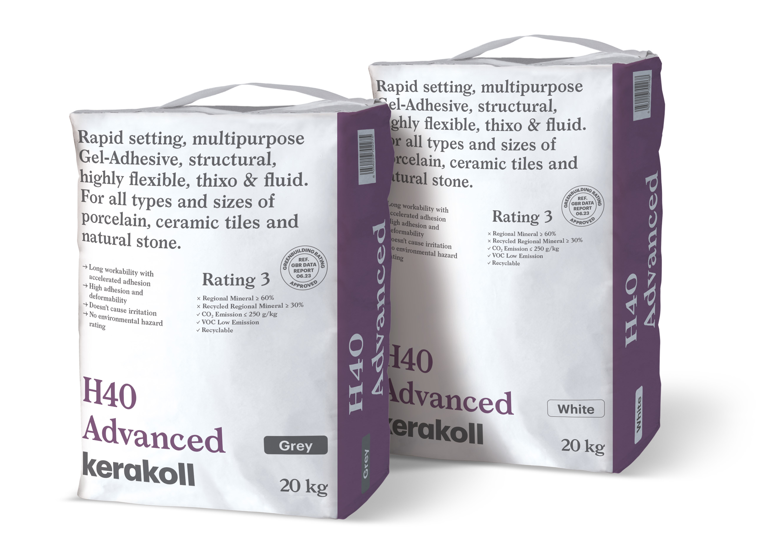 H40 Advanced is a rapid-setting, multipurpose gel adhesive that is structural, highly flexible, and available in both thixotropic and fluid consistencies. It is suitable for all types and sizes of porcelain tiles, ceramic tiles, and natural stones.