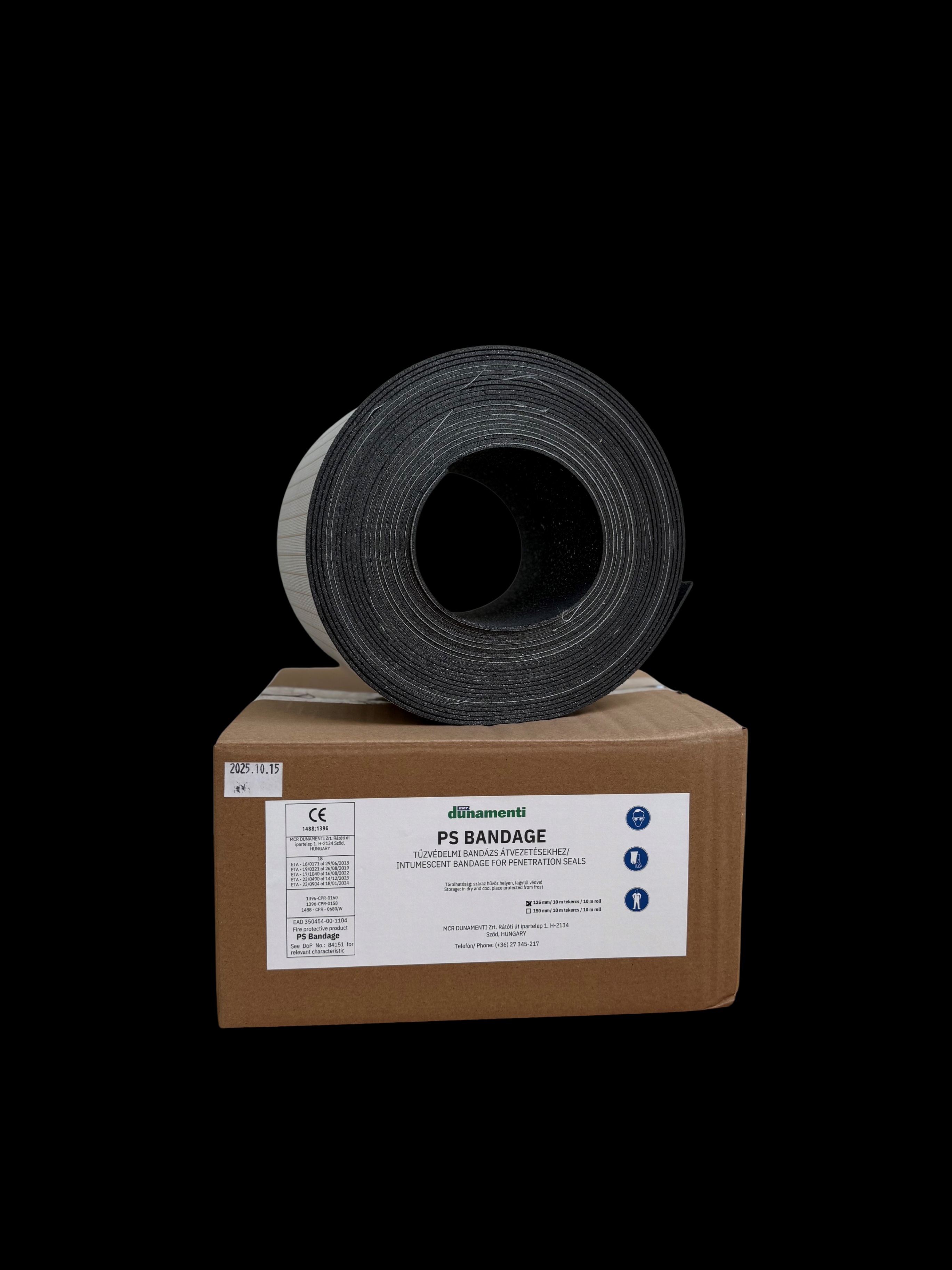 The PS Bandage is a flexible intumescent wrap designed to provide fire-stopping seals for service penetrations in fire-rated wall and floor structures. The product is primarily used to protect metal pipes with combustible insulation and cable bundles. Under thermal load, the graphite-based material expands significantly under pressure, filling the penetration cross-section and preventing the passage of fire through the building element. The PS Bandage is reinforced with glass-filament fabric to maintain the structural integrity of the intumescent layer throughout the fire-resistance period. Its flexible design enables efficient application across a range of pipe diameters and configurations. The product is supplied in rolls, enabling easy handling and precise application across various construction environments.