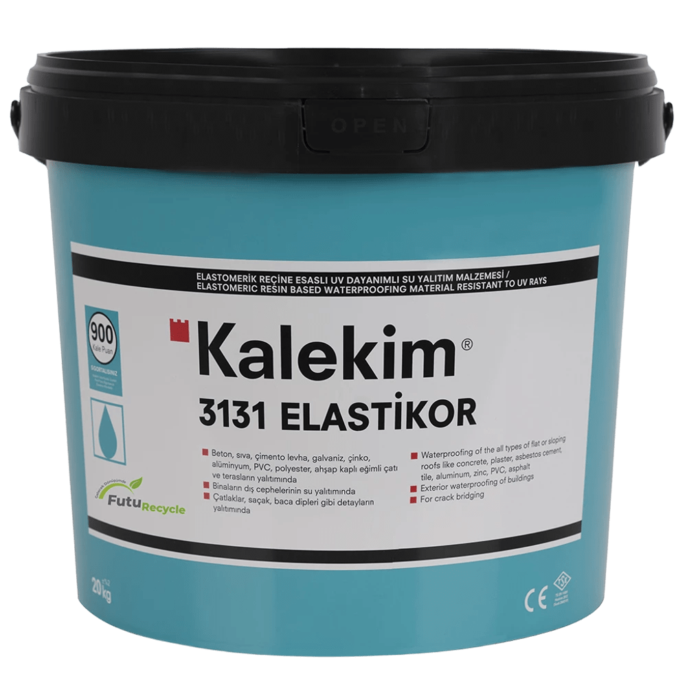 Acrylic emulsion based, one component, flexible waterproofing material applicable by brush or roller. The product is used for waterproofing of all types of flat or inclined roofs such as concrete, plaster, asbestos cement, aluminum, zinc, PVC and asphalt surfaces that are at least one year old, as well as for waterproofing of the north side of buildings and for crack bridging applications. It is highly resistant to UV rays, has 300% elasticity, is solvent free, and is water vapour permeable while remaining elastic at low temperatures. The product forms a one-piece, joint-free and continuous waterproofing layer, is overpaintable, ready to use and easily applicable with low labor cost. It is supplied in 1 kg, 3 kg, 10 kg and 20 kg plastic pails and is classified as Type DMO1P in compliance with EN 14891 and EN 1504-2 and is certified according to EN 1504-2.
