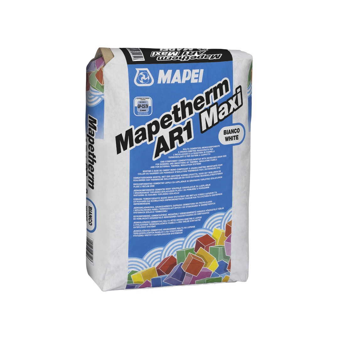 Mapether AR 1 Maxi (white) is a cementitious mortar with bers for bonding and levelling boards in external thermal insulation system (ETICS) and for smoothing masonry - coarse grain size.