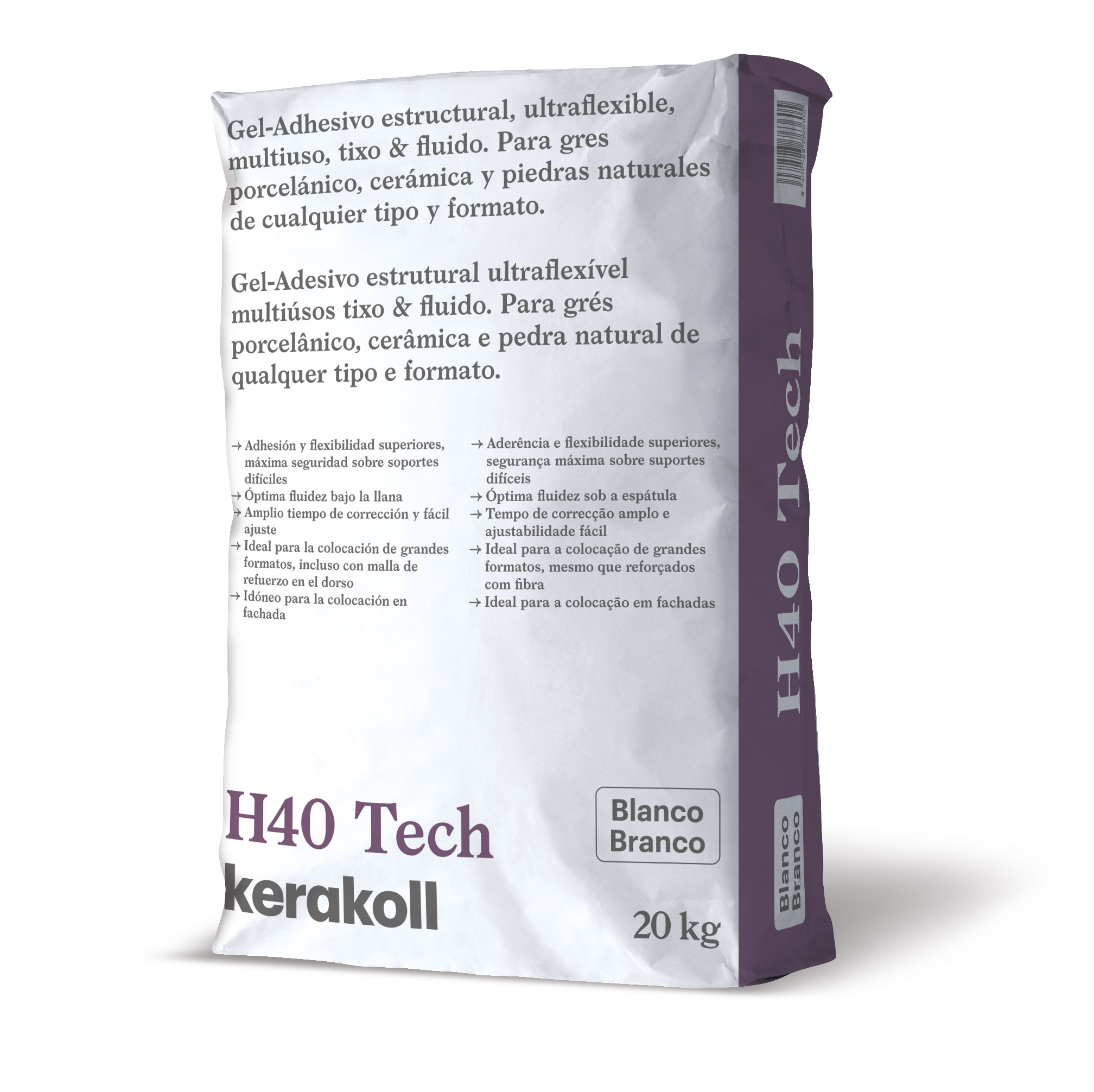 H40 Tech is an ultra-flexible, multipurpose structural gel-adhesive engineered with dual thixotropic and fluid rheological properties. It is specifically formulated to deliver superior adhesion and maximum structural security across a wide range of difficult substrates. The material exhibits optimal trowel fluidity and an extended correction time, facilitating precise adjustments during application. Designed for universal compatibility, it ensures the reliable installation of porcelain stoneware, ceramics, and all classifications of natural stone, regardless of type or format. Furthermore, its advanced flexibility and cohesive strength make it an ideal solution for complex architectural applications, including exterior facade installations and the secure bonding of large-format slabs equipped with rear reinforcement mesh.