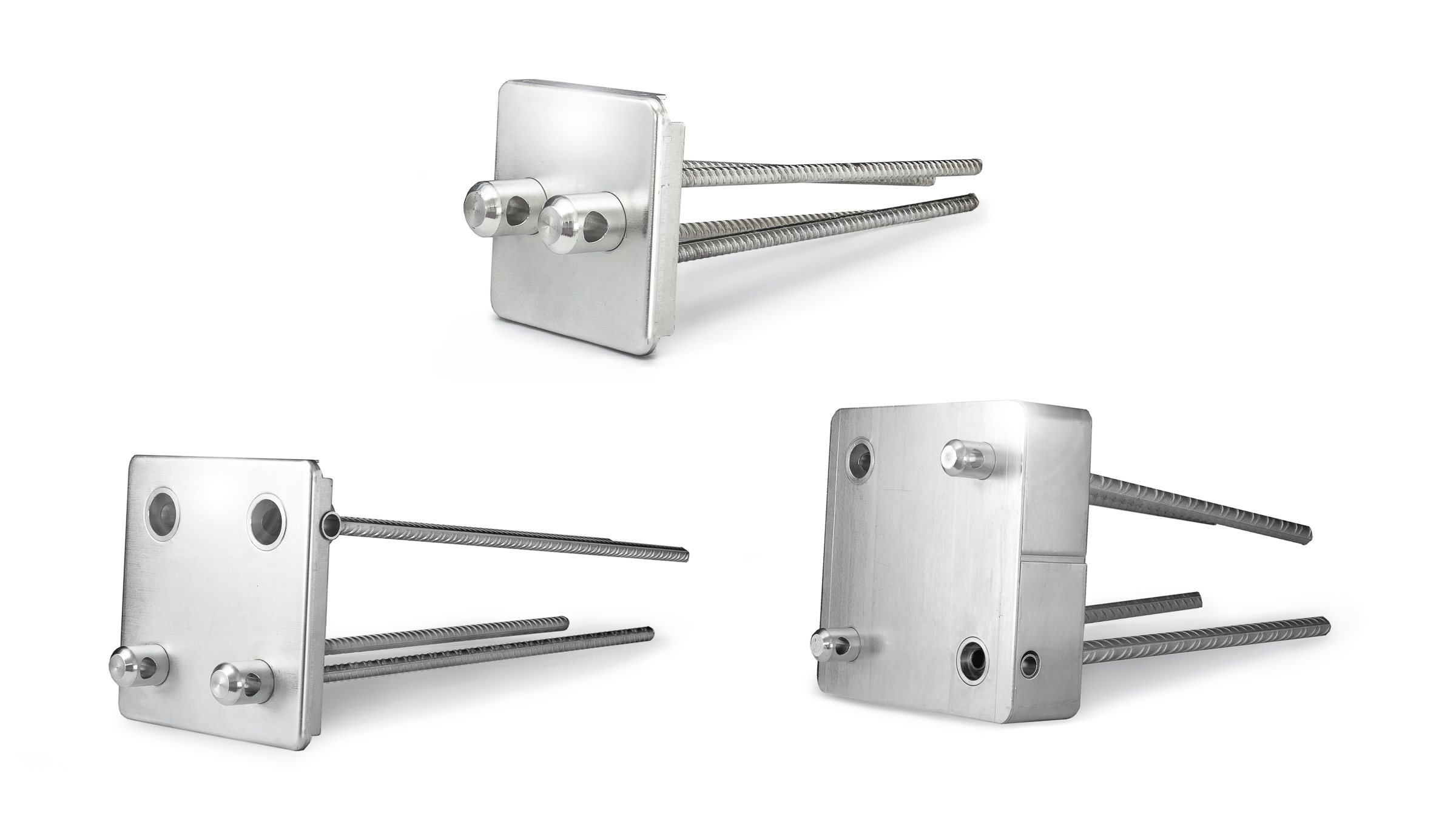 Pile joints for precast concrete piles by Emeca. Pile joints are made mainly of structural steel and reinforcement bars.