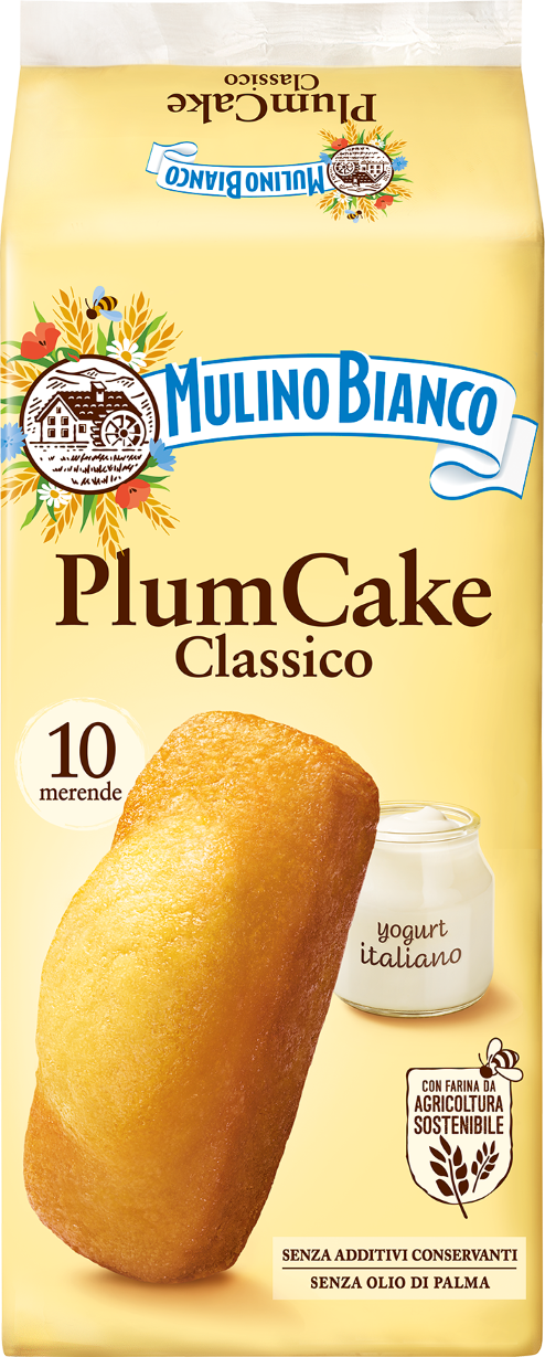 Mulino Bianco Classic plumcake are Italian brioches, very soft thanks to their recipe with yogurt. Classic plumcake are produced in the Italian bakery plant of Cremona. They are packed in 330 and 660 grams formats and are ready for the consumption. For more information about the product see http://www.mulinobianco.it/colazione-e-merenda/merende/plum-cake.