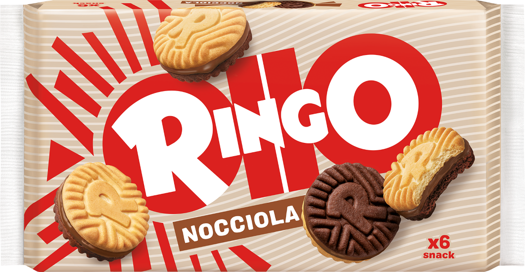 Ringo Nocciola are crisp and tasty Italian snacks produced in Novara bakery plant. They are packed in 165 and 330 grams formats and are ready for consumption. For more information about the product see http://www.ringo.it/.