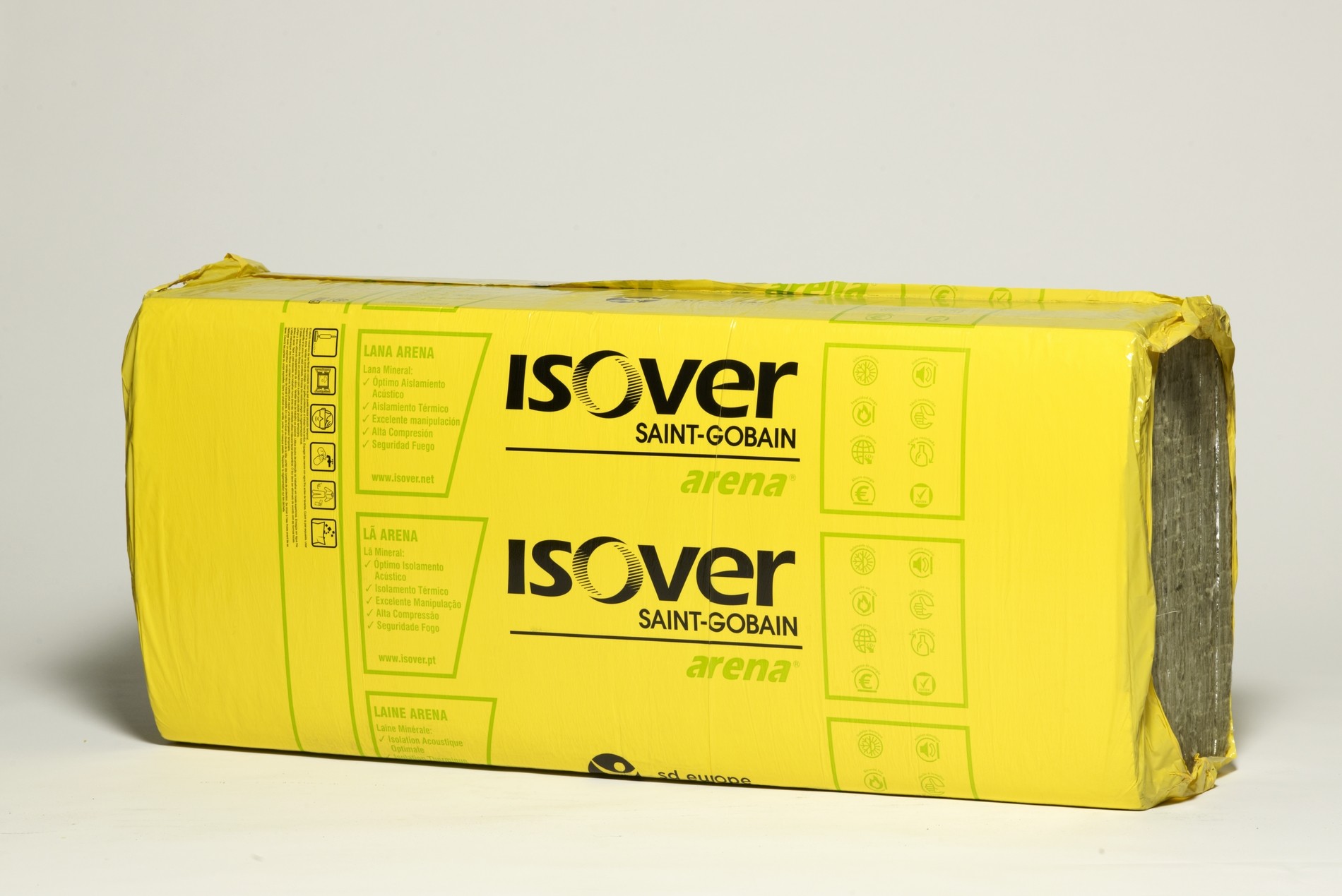 English Rigid panels arena mineral wool ISOVER, non-hydrophilic, unfaced. Compression-resistant Arena mineral wool panel.