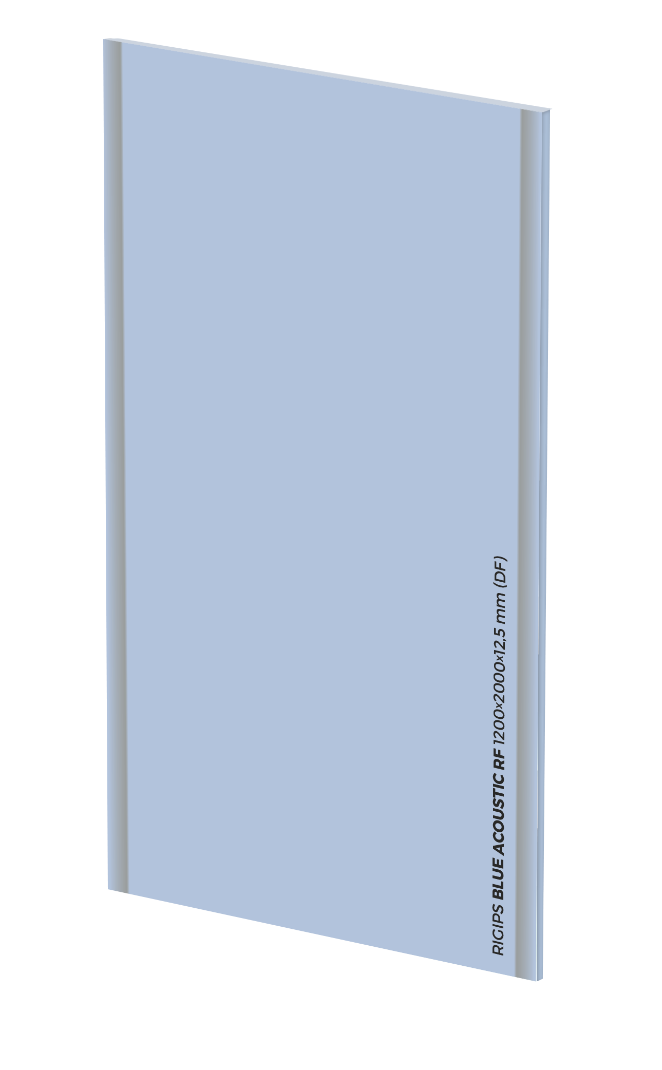 Rigips® Blue Acoustic RF (DF) 12,5 mm soundproof and fireproof plasterboard is an excellent solution for building high sound and fire-resistant structures with a small structural thickness. Blue Acoustic RF plasterboard is the perfect choice for building space-delimiting structures for offices with a high level of demand, hotel rooms, and apartments providing increased comfort.