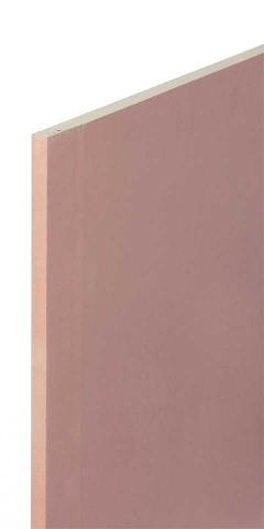 Special plasterboard with improved core adhesion at high temperature; where the gypsum is admixed with glass fibers and vermiculite to increase its resistance to fire. Pink coloured face paper.